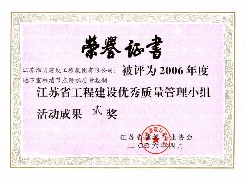 2006年全国工程建设优秀质量管理小组二等奖-书城