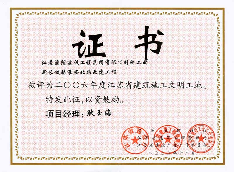 2006年省级建筑施工 新长铁路淮安北站改建工程-耿玉海