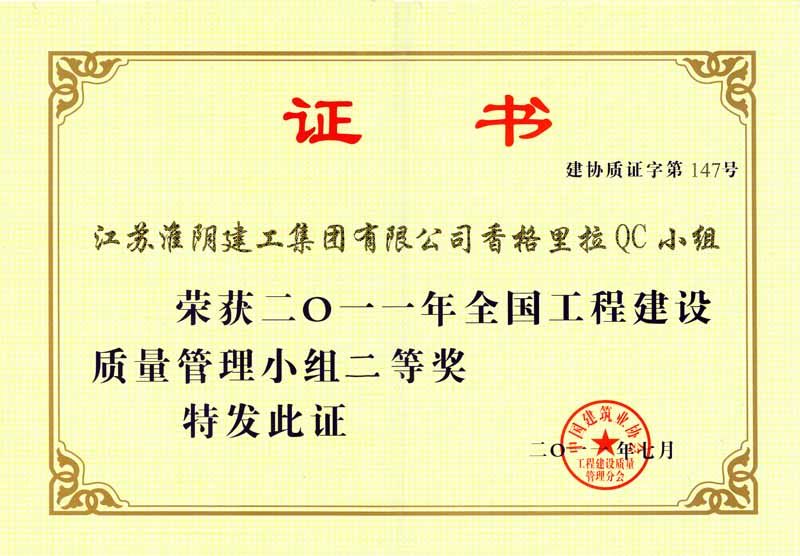 2011年全国工程建设质量管理小组二等奖