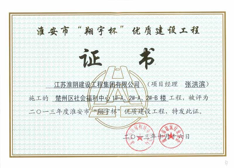 2013年市翔宇杯楚州区社会福利中心1#-A2#-2#-B工程(张洪滨)