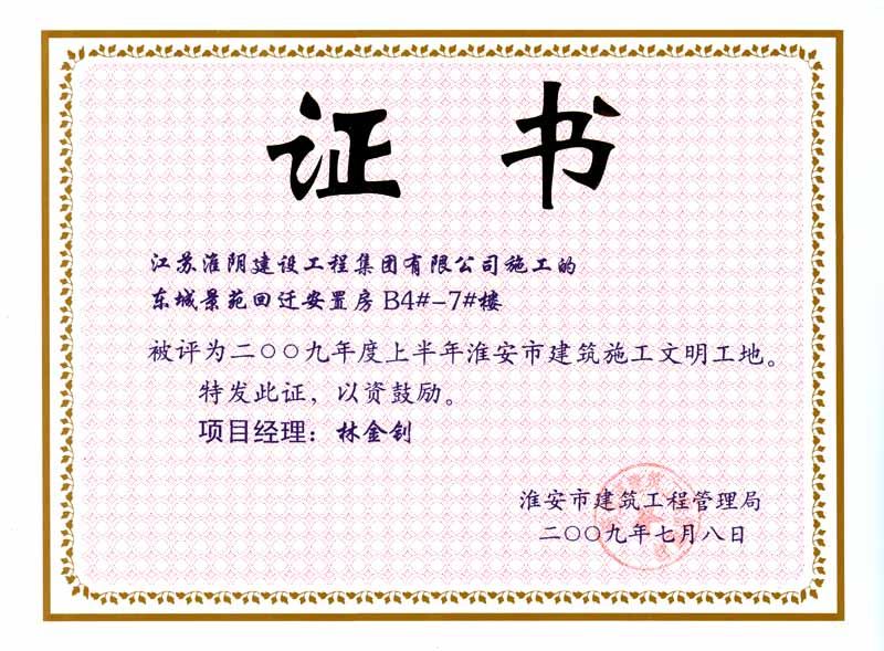 2009年市文明工地东城景苑回迁安置房B4#-7#楼-林金钊