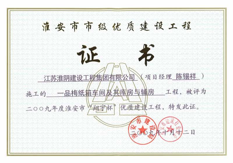 2009年市优工程一品梅纸箱车间及其库房与辅房-陈锡祥