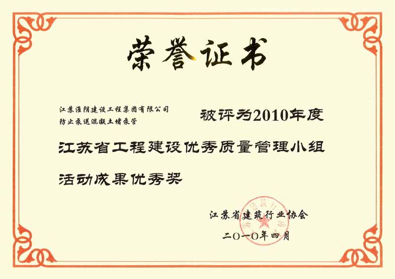 2010年省优质优秀奖(防止泵送混凝土堵泵管)