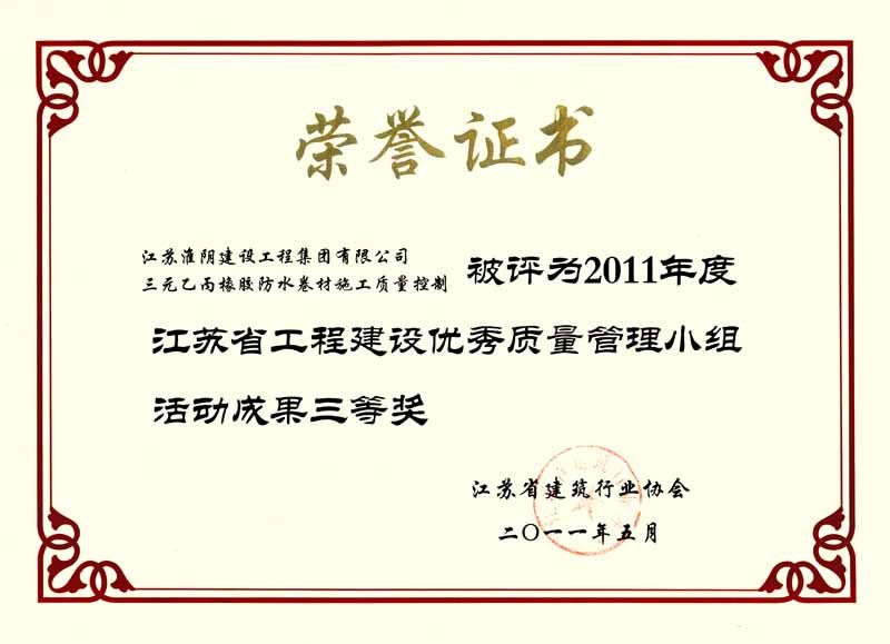 2011年省优三等奖-三元乙丙橡胶防水卷材施工质量控制
