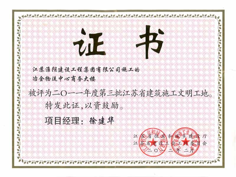 2012年省建筑文明工地张家港冶金物流中心商务大楼