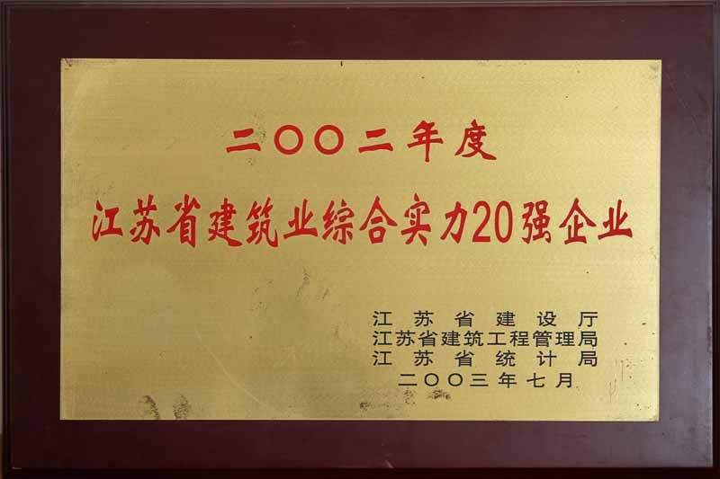 2002年江苏省建筑业综合实力20强企业