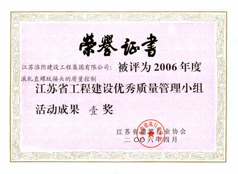 2006年省工程建设优秀质量管理小组活动成果壹等奖-滚轧直螺纹接头的质量控制