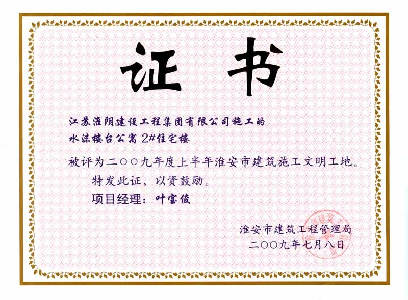 2009年市文明工地水沐楼台公寓2#住宅楼-叶宝俊